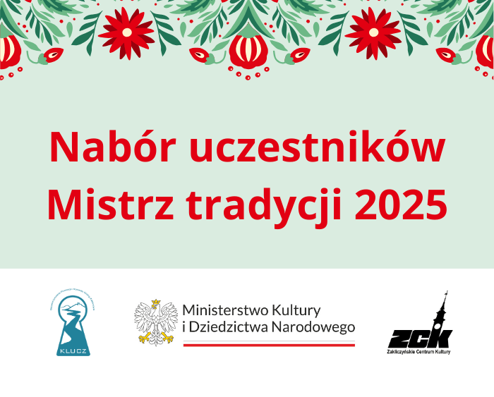 Nabór do projektów realizowanych w ramach programu Kultura Ludowa i Tradycyjna - Mistrz Tradycji 2025!Zakliczyńskie Centrum Kultury oraz Stowarzyszenie Promocji i Rozwoju Gminy Zakliczyn "Klucz" zapraszają do udziału w dwóch wyjątkowych projektach, które mają na celu...